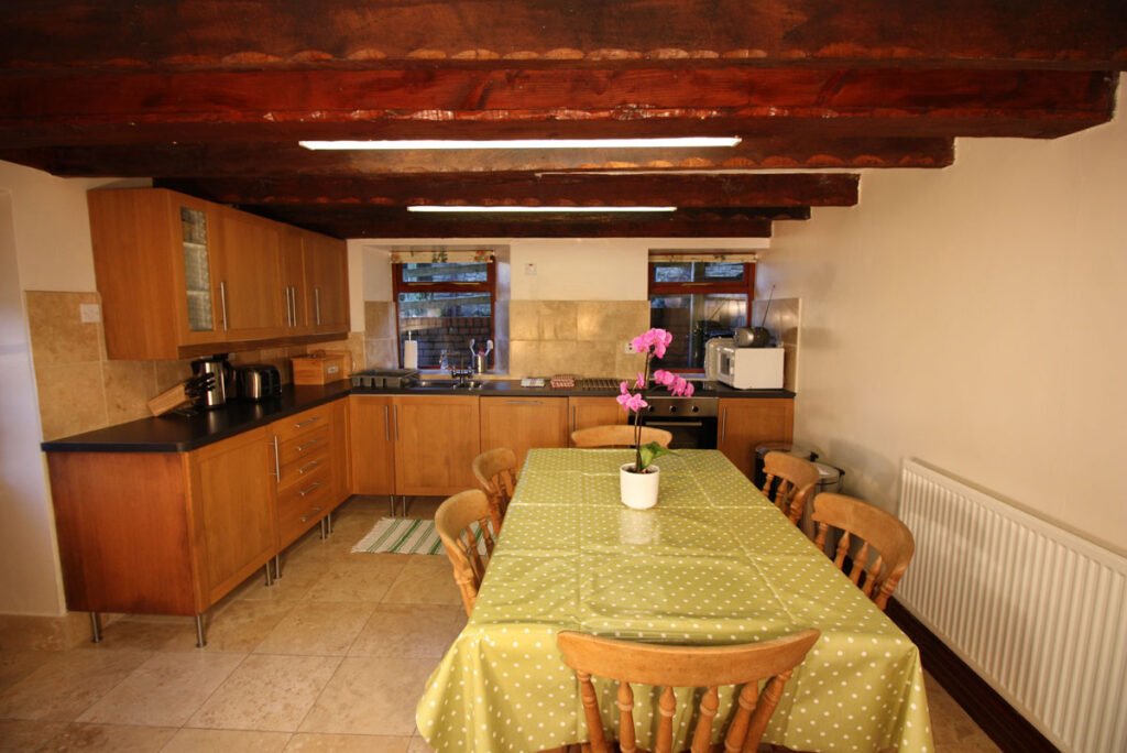 The Barn Cottage: 3 bedrooms, lounge with stone walls & garden view, kitchen with travertine tiles & oak units. Book now for an unforgettable family vacation.